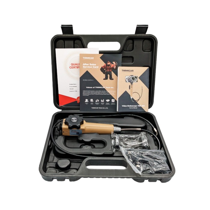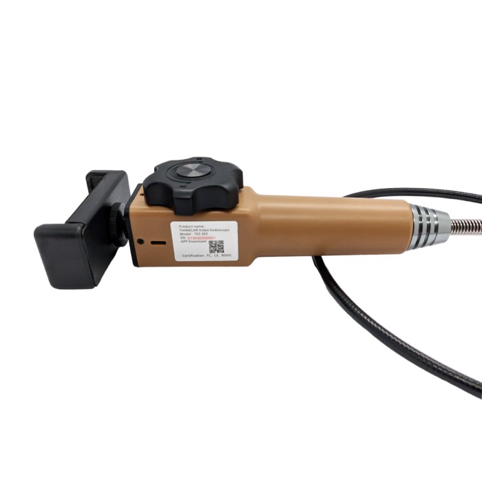 THINKCAR TES 303 — професійний відеоскоп для візуального огляду важкодоступних місць. Пристрій оснащений напівжорстким гнучким зондом довжиною 950 мм та діаметром 6,5 мм, що дозволяє виконувати інспекцію у вузьких каналах і закритих порожнинах.